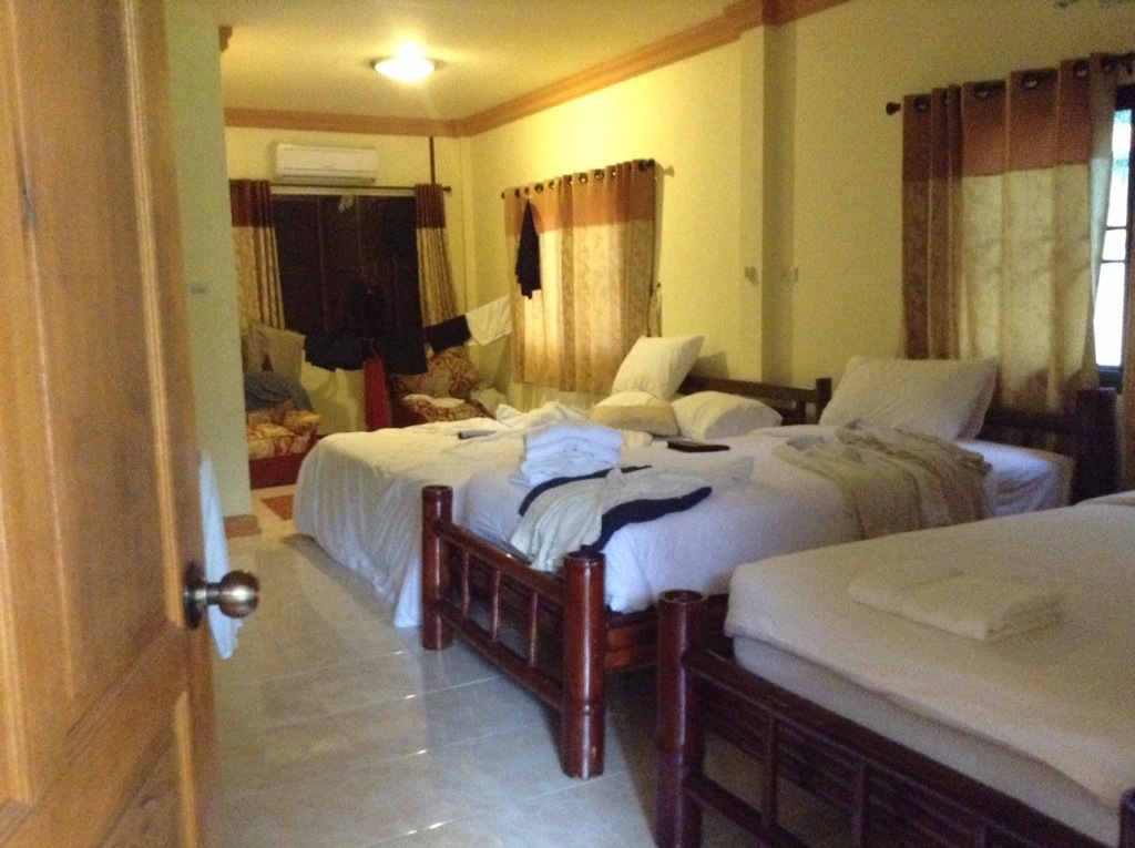 At the bus station there was some confusion about where we were trying to go, but once again, map screenshots on the iPad saved the day. We were directed to the 3rd class open air bus heading back to chiang rai, and were assured that they would stop for us, which they did. We stop at a roadside restaurant for some noodles, and he confirms that we are headed up the correct side road, about 5 minutes walk. He seems surprised that we are on foot. The resort is lovely, but we think we are the only customers here. We also think that it’s probably a place intended for people with cars, not backpackers, but the price is great, and the rooms are really, really good. Apologies for the laundry strung up there. Any time we have 3 days we wash a few things so we have time for them to dry.