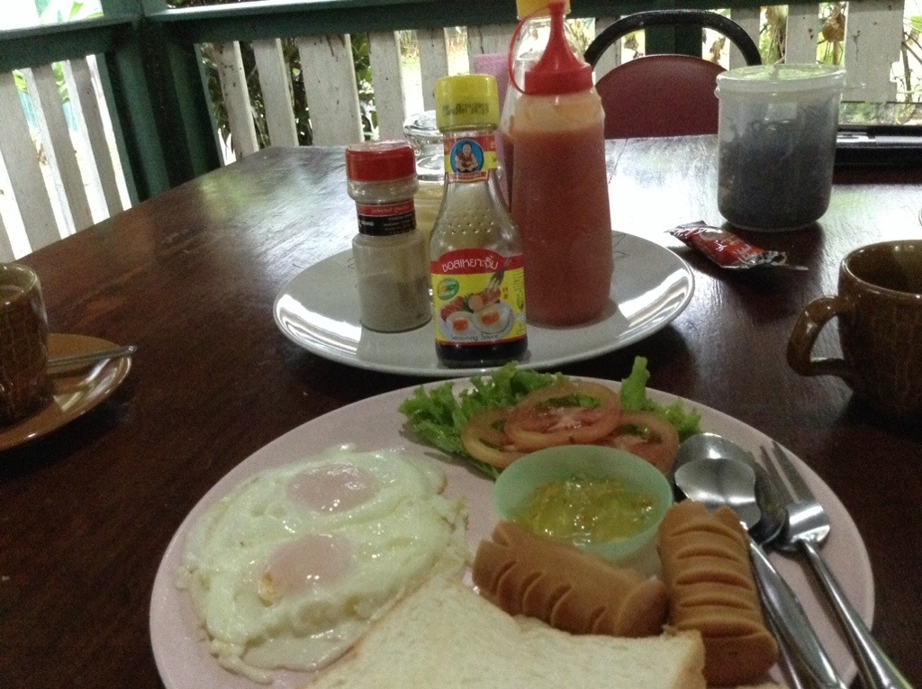 The breakfast, which is included in the room rate, is not worth the money. The breakfast served is the exact breakfast pictured on the Maggi seasoning bottle. It’s like it was their guide to western breakfast. This was from the first morning, sitting in a charming cottage overlooking the creek, but neither of us could finish it. The coffee is powdered packets of Nescafé 3 in 1- sugar, creamer and coffee powder, in that order. I hate to admit that it’s growing on me.