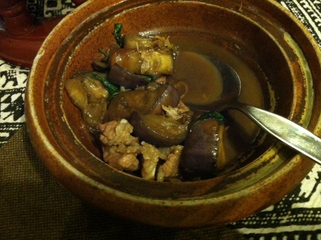 And eggplant with sliced pork. Again, may not look exciting, but you put it in your mouth and your eyes fly open with surprise, and you start trying to think of ways to keep it all to yourself. Or at least that’s what I did. 70 baht, we should have ordered another.