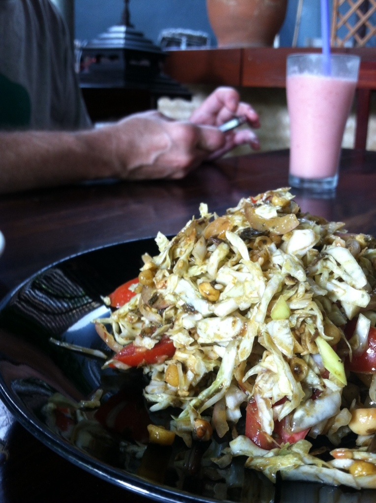 There are two things that I’ve been on the lookout for since we’ve been in Thailand, and I found them here in Chiang Mai: 1) Burmese tea Leaf Salad- since trying this at Mandalay in San Francisco, and learning to make it (thanks Molly B, for making and providing the fermented leaves!), and 2) Miang Kham, which I had at a now defunct restaurant in Seattle while attending the ACS conference a couple of years ago., and just cannot find in the US.