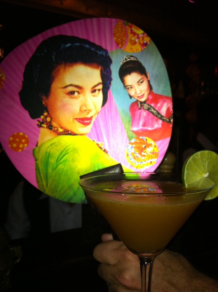 Just because we are traveling, and every night is date night (awww), we decided to have a tourist-trap date. We started at Miss Wong, a Shanghai themed cocktail lounge. All deep red and black lacquer, with fun drinks and good food. Also known as one of the most gay friendly joints in town, it was cool and sleek, and they really exploit the theme. This is the back of the cocktail menu that’s printed on a fan, and a pic of my passion fruit martini, which was delicious.