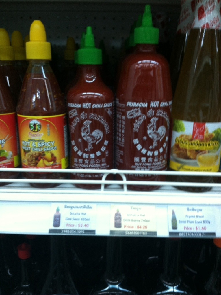 Another indicator that they are catering to western tourists- sriracha at the market. Made in California.