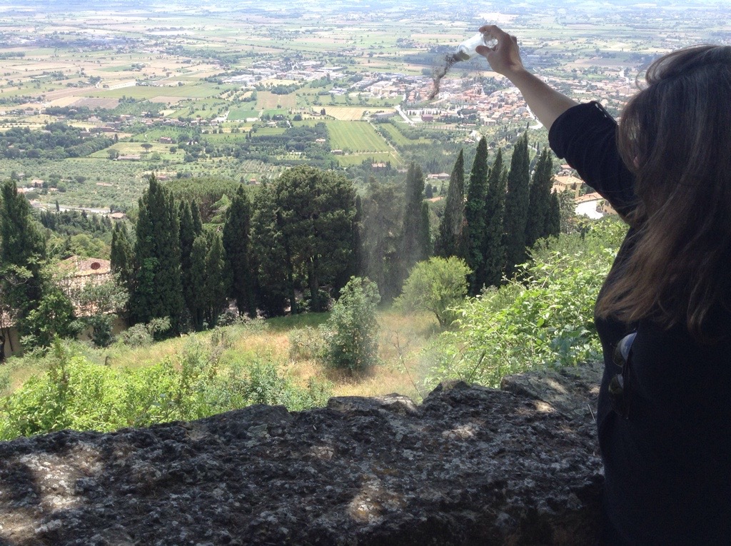 Ellen studied in Cortona when she was pursuing her fine arts degree at the University of Georgia. Her sister Leslie, who had given me the gift of carrying Ellen’s ashes with me on my travels, reminded me of this when I told her we would be heading across Italy for the final stretch. So, Cortona it was!