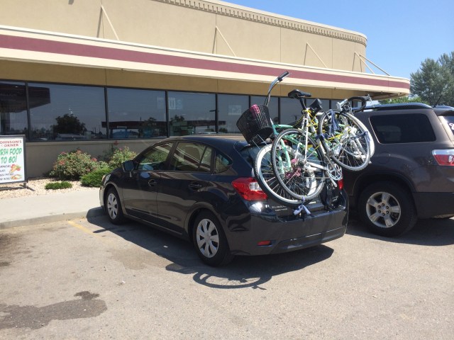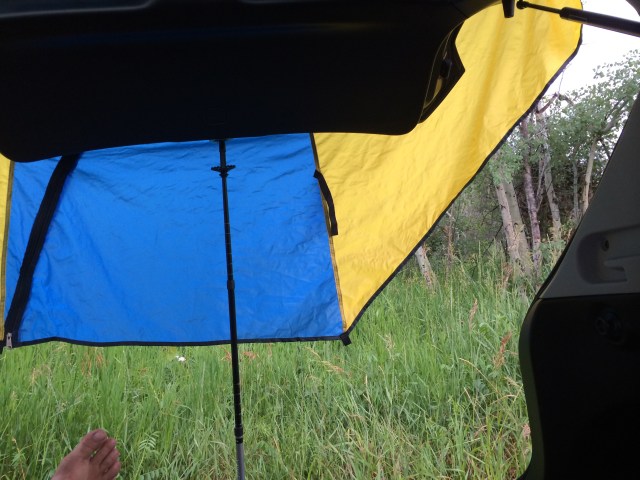 We made it to Dubois, WY, which has a free public park for camping in town. We had the back of the car set for sleeping with the hatch open, so we were good.