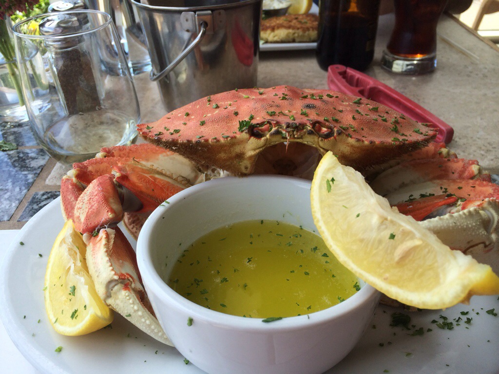 I have always preferred crab to lobster, and a couple of years ago on a trip to San Fran for the Winter Fancy Food show, we decided to try Dungeness crab wherever we could. I was pretty underwhelmed- lots of work for little reward. But, I got a hankering to try again, so when we got to Newport, OR, I was ready. This critter below changed my mind about the Dungeness. Meaty, delicious, briny, crabby!